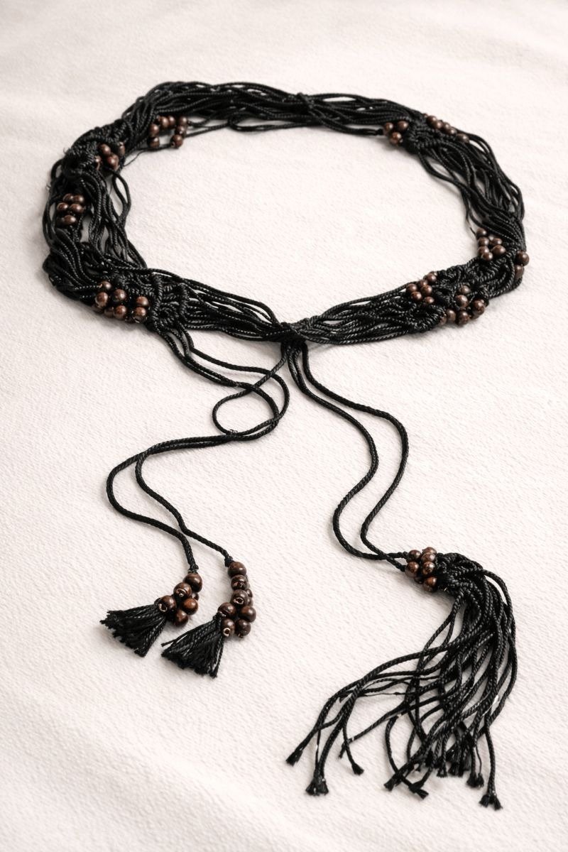 This elegant black beaded tassel belt is designed to add a stylish ethnic touch to your outfit. Made with durable black threads and finished with wooden bead detailing, it offers a perfect blend of comfort and traditional charm. Lightweight and adjustable, this belt pairs beautifully with dresses, kurtis, skirts, and fusion wear. Ideal for casual outings, festive looks, or boho-inspired styling.