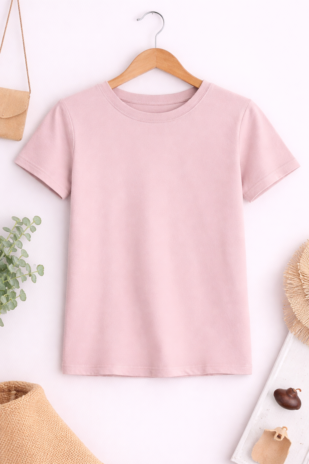 This Blush Classic Crew Neck T-Shirt is a timeless wardrobe essential made from soft, breathable fabric for all-day comfort. Designed with a round neckline and short sleeves, it offers a relaxed yet flattering fit that’s easy to style. The clean, minimal look makes it perfect for casual wear, layering, or pairing with jeans, skirts,