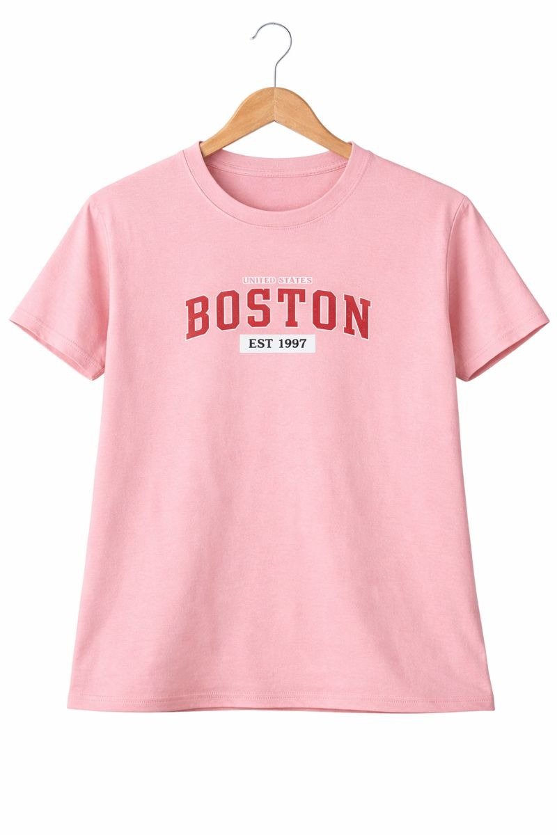 Add a soft and stylish touch to your casual wardrobe with our Boston Est. 1997 Graphic T-Shirt. Crafted from comfortable and breathable cotton fabric, this light pink tee features a clean “Boston” print inspired by classic American street style. Designed with a round neck and regular fit, it’s perfect for everyday wear, college looks, or relaxed outings. Easy to style with jeans, trousers, or shorts, this t-shirt offers a simple yet trendy vibe for daily comfort.
