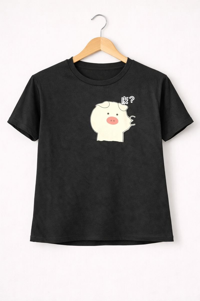Add a fun and playful touch to your everyday style with the Cute Pig Cartoon Graphic Tee. Crafted in classic black, this t-shirt features an adorable pig face graphic with a quirky expression that instantly stands out. Made from soft, breathable fabric, it offers a comfortable fit for all-day wear. Perfect for casual outings, lounging, or adding a cute vibe to your streetwear look, this tee pairs easily with jeans, shorts, or joggers.