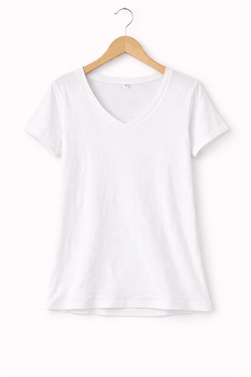 Keep your style simple and versatile with this Classic White V-Neck T-Shirt. Designed with a clean V-neckline and short sleeves, this tee offers a comfortable and relaxed fit for everyday wear. Made from soft, breathable fabric, it feels light on the skin and is perfect for all-day comfort. Easy to pair with jeans, shorts, skirts, or layer under jackets, this white tee is a wardrobe essential for casual outings, daily wear, or lounging.