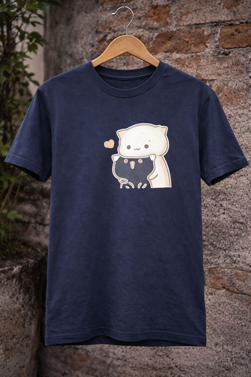Bring a touch of cuteness to your everyday style with this dark-colored graphic T-shirt featuring an adorable cartoon cat hug print. Made from soft and breathable cotton fabric, this T-shirt ensures all-day comfort with a relaxed, easy fit. The playful yet minimal design makes it perfect for casual wear, lounging, or outings with friends. Pair it effortlessly with jeans or joggers for a cute and comfy look.