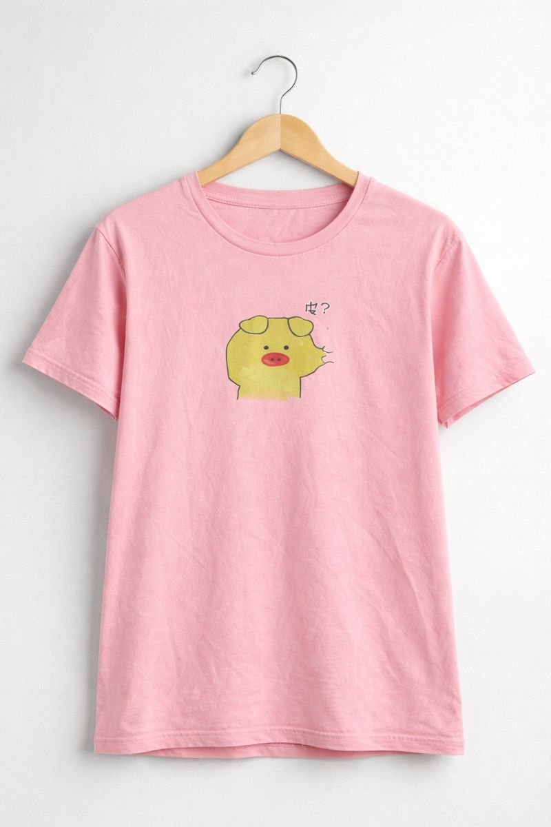 Add a cute touch to your daily look with this soft pink graphic t-shirt featuring a fun cartoon pig print. Made with breathable fabric for all-day comfort, this tee is perfect for casual outings, college wear, or everyday styling.