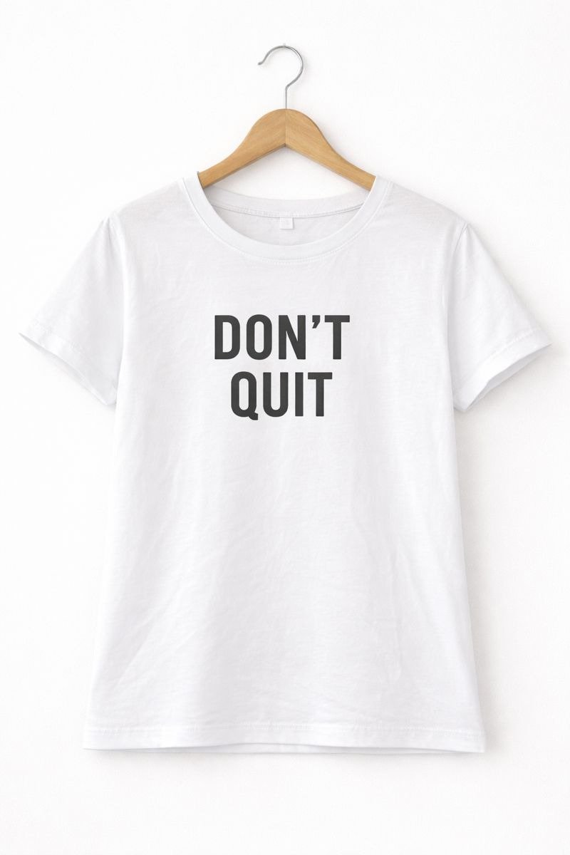 Stay inspired every day with this classic white “Don’t Quit” graphic T-shirt. Designed with a bold motivational print, this tee is perfect for those who believe in staying strong and never giving up. Made from soft, breathable fabric, it ensures all-day comfort and an easy regular fit. Pair it effortlessly with jeans, joggers, or shorts for a confident and casual look.