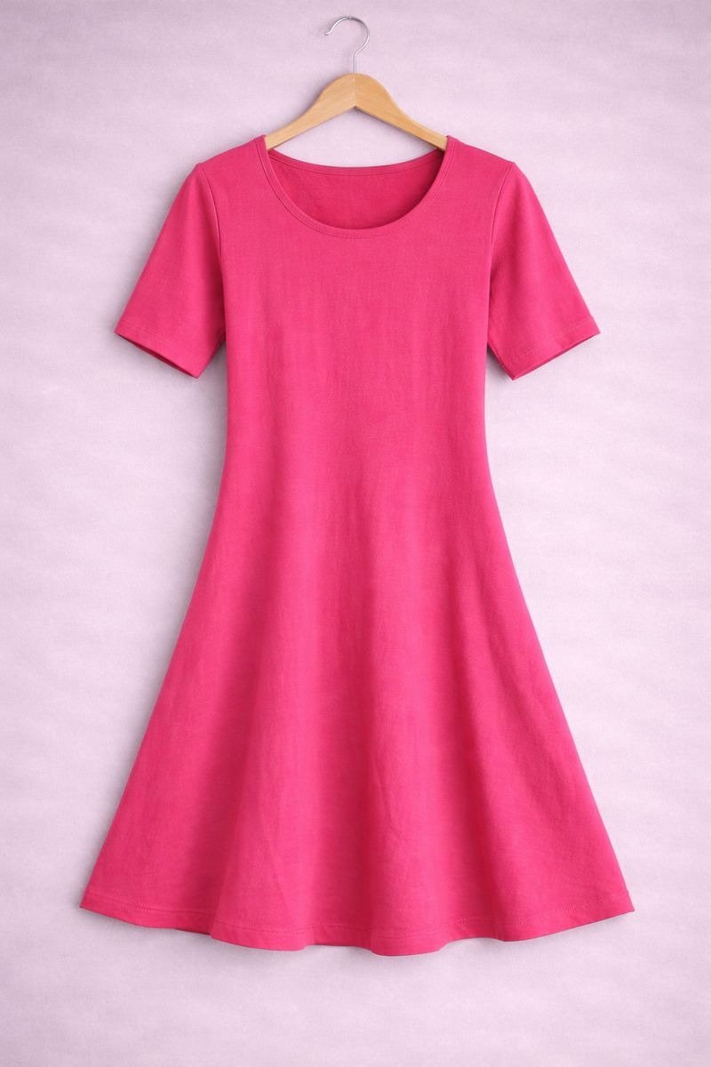 This pink flared tunic dress is designed for easy comfort and everyday elegance. Made from soft and breathable fabric, it features a flattering A-line silhouette that allows free movement and a relaxed fit. The half sleeves add a balanced, casual touch, making it suitable for daily wear, office hours, or casual outings. Simple yet stylish, this tunic dress pairs well with leggings, trousers, or can be worn on its own for a clean and effortless look.