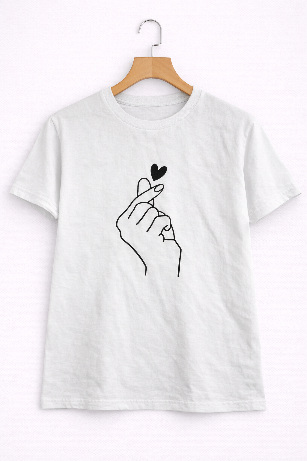 This stylish half sleeve T-shirt features a clean and minimal finger heart graphic, giving it a modern and cute look. Made from soft and breathable cotton fabric, it ensures all-day comfort and a smooth feel on the skin. The classic round neck and regular fit make it perfect for daily wear, casual outings, or pairing with jeans, shorts, or skirts.