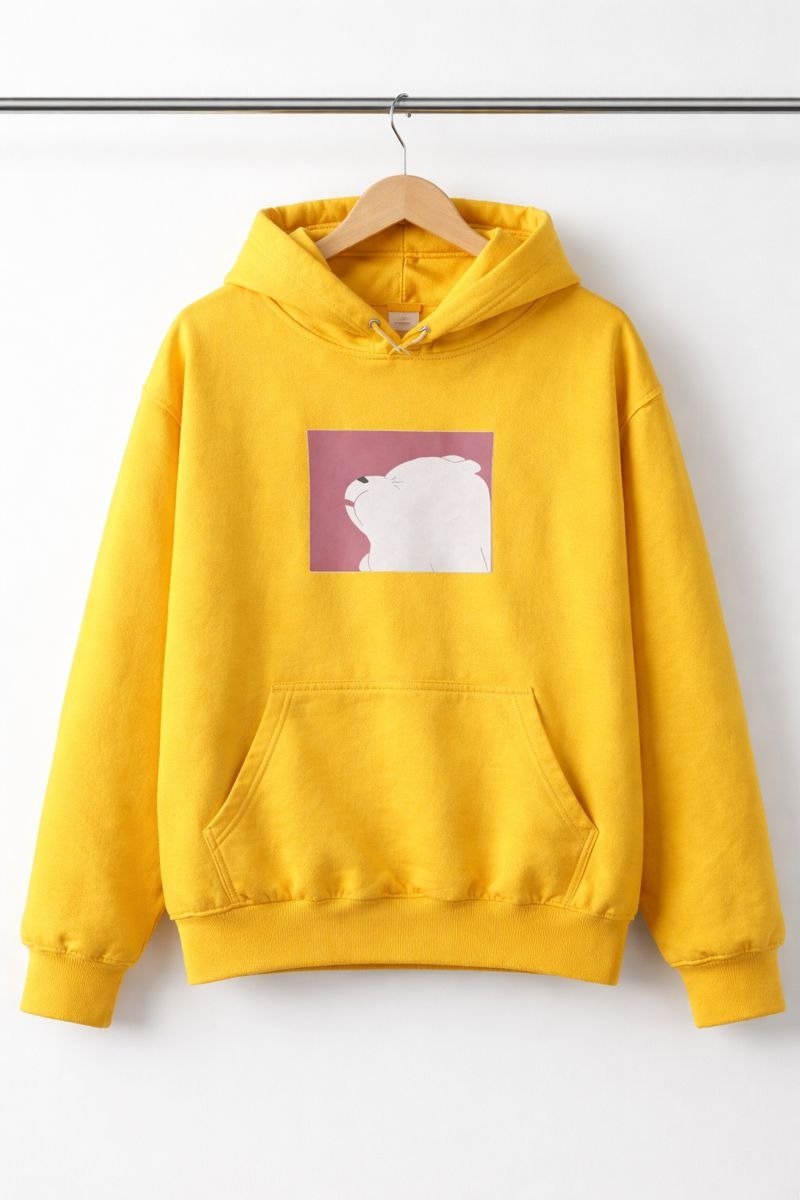 Add a pop of color to your casual wardrobe with this Mustard Bear Graphic Hoodie. Made from soft and comfortable fabric, this hoodie features a minimal bear print on the front that gives it a trendy yet playful look. Designed with a cozy hood, adjustable drawstrings, ribbed cuffs, and a front kangaroo pocket, it’s perfect for everyday wear, winter outings, or relaxed street-style looks. Easy to pair with jeans or joggers for a stylish, laid-back vibe.