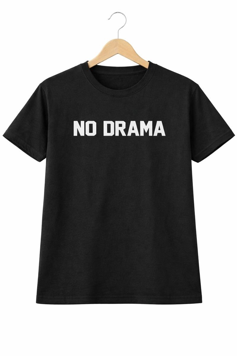 Keep it bold and drama-free with this No Drama Black Statement T-Shirt. Featuring a clean and powerful text print on a classic black base, this t-shirt is perfect for those who love minimal yet confident fashion. Made from soft and breathable fabric, it offers comfortable all-day wear. Easy to style and versatile, this tee is ideal for casual outings, daily wear, or relaxed street looks.
