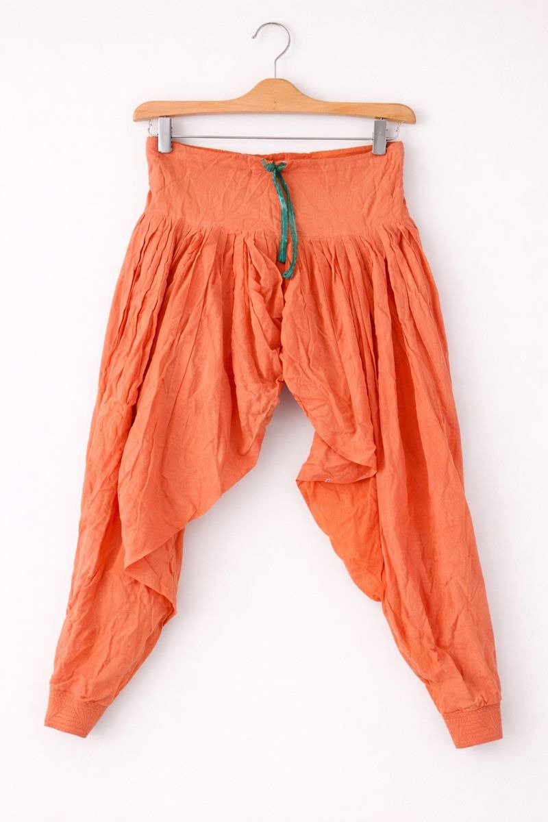 Stay comfortable and stylish with these peach cotton Patiala pants. Soft, breathable fabric ke saath yeh Patiala all-day comfort deta hai. Relaxed fit aur flowy drape isse daily wear, ethnic looks aur festive styling ke liye perfect banata hai. Kurti, short top ya crop top ke saath easily pair ho jaata hai.