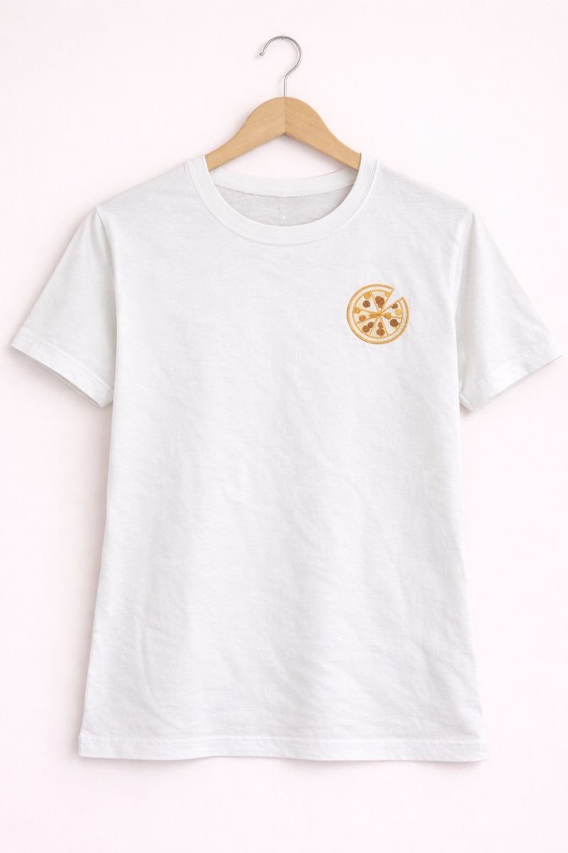Add a fun and quirky touch to your casual wardrobe with the Pizza Slice Mini Print White T-Shirt. Featuring a small pizza graphic on the chest, this t-shirt brings a playful and minimal vibe to your everyday look. Made from soft, breathable fabric, it ensures all-day comfort and easy wear. Perfect for casual outings, daily wear, or relaxed hangouts, this tee pairs effortlessly with jeans, shorts, or skirts for a cool and cheerful style.