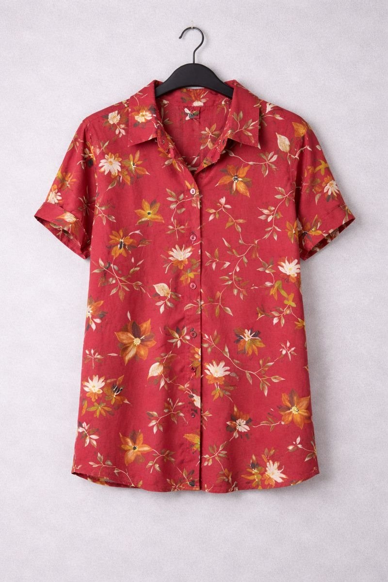 Add a fresh and vibrant touch to your wardrobe with this Red Floral Printed Top. Crafted from soft and breathable fabric, this top features a beautiful floral print that brings a lively and elegant feel to your everyday style. Designed with a button-down front, short sleeves, and a classic collar, it offers both comfort and a flattering fit.