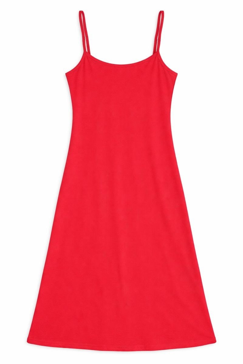 This red ribbed spaghetti strap dress is designed for effortless everyday comfort with a clean and timeless silhouette. Made from soft, stretchable ribbed fabric, it offers a smooth and flattering fit that drapes naturally on the body. The sleeveless design with thin shoulder straps keeps it lightweight and breathable, making it ideal for daily wear, casual outings, or relaxed home styling. Easy to pair with flats, sandals, or layered looks, this dress is a versatile wardrobe essential.
