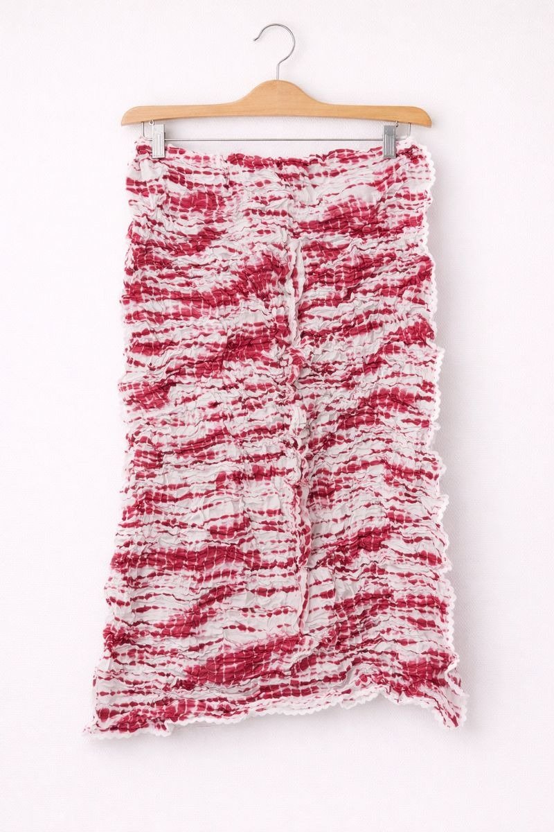 Turn heads with this red tie-dye smocked tube top. Soft, stretchable fabric ke saath yeh top body-hugging yet comfortable fit deta hai. Crinkle texture aur bold tie-dye print isse summer outings, vacations aur casual party looks ke liye perfect banata hai. High-waist jeans, skirts ya shorts ke saath easily pair ho jaata hai.