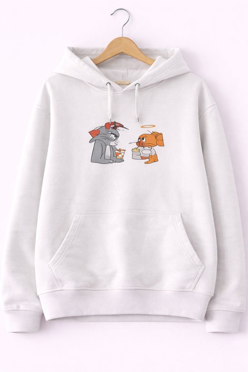Stay cozy and stylish with this Cute Character White Hoodie. Designed with a soft fabric and a playful cartoon print, this hoodie is perfect for everyday wear. It features a comfortable hood, long sleeves, and a relaxed fit that keeps you warm without compromising on style. Ideal for casual outings, lounging, or layering during cooler days.