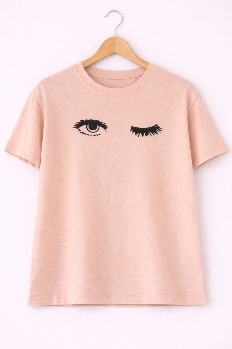 Bring a playful and stylish touch to your wardrobe with the Wink Eyes Peach Tee. Designed in a soft peach tone, this t-shirt features a cute eye graphic with one open eye and one wink, giving it a fun and expressive look. Crafted from lightweight and breathable fabric, it offers a relaxed fit that’s perfect for everyday wear. Easy to pair with jeans, shorts, or skirts, this tee is ideal for casual outings, college wear, or relaxed days out.